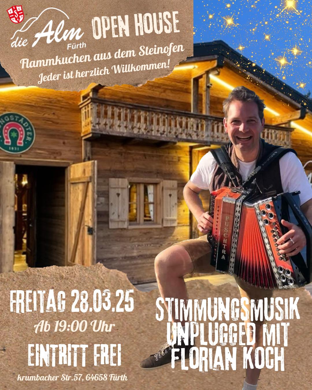 Am Freitag, den 28.03.25 heißt es wieder „Open House“ in unserer Alm. Wir bewirten Euch herzlich mit kleinen Speisen und kühlen Getränken vom Fass.